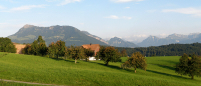 Ebikon Ebrüti: Blick vom Rigi bis zum Pilatus